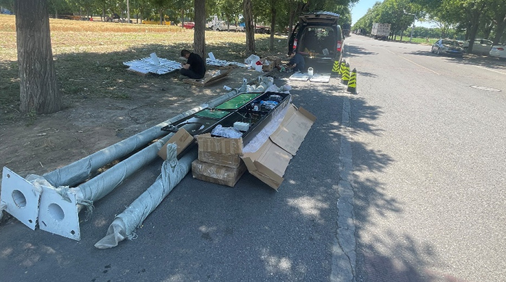 2023年6月初,“道路安 全预警系统”在某市进行了安装试运行。在此期间,业主对设备的预警功能高度重视,亲自参与设备测试工作,陪同实施工程师对安装位置进行了逐一的实地勘察,并给出了很多专业的意见。