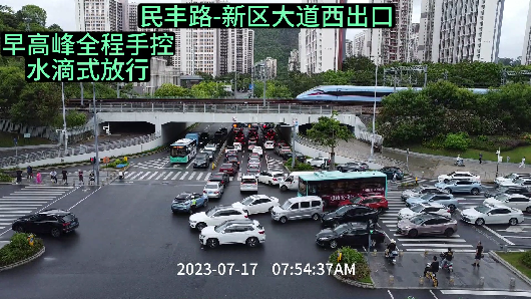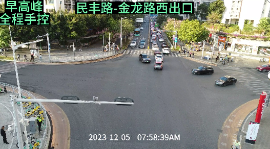 龙华区民丰路在早高峰期间,大量的西行车流经过民丰路--新区大道/金龙路/玉龙路三个连续交叉口去往南坪快速,受龙悦居公交站大巴停靠、南坪快速路排队倒灌等影响,常规信号配时方案无法满足早高峰路段通行需求,导致区域性交通拥堵,严重时迫使交警安排近10余名警力现场疏导,“滴水式放行”耗费大量警力资源。